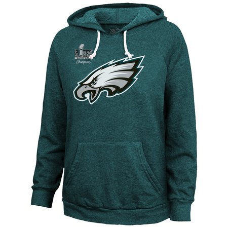 Women's Philadelphia Eagles Saquon Barkley Threads Midnight Green Super Bowl LIX Champions Name & Number Tri-Blend Pullover Hoodie