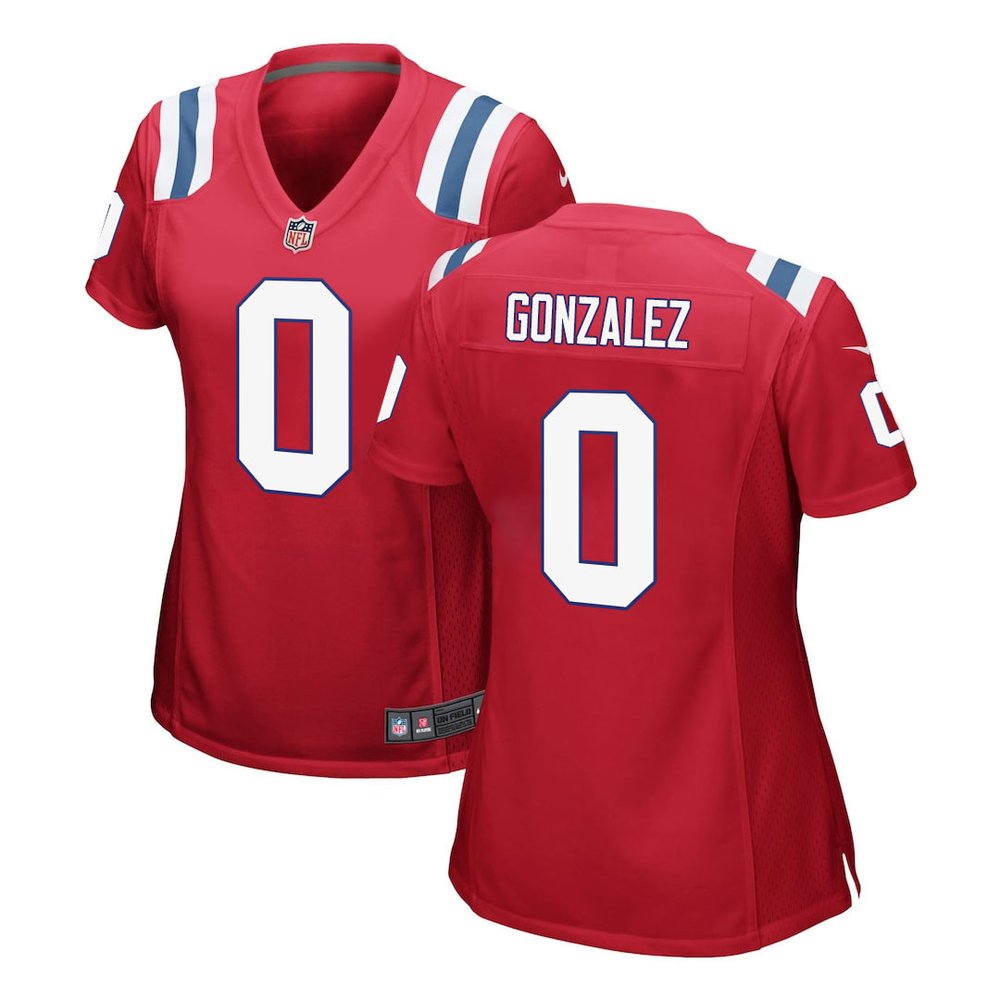 Women's New England Patriots #0 Christian Gonzalez Red Game Jersey