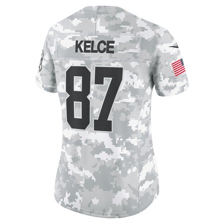 Women's Kansas City Chiefs Travis Kelce Arctic Camo 2024 Salute to Service Limited Jersey