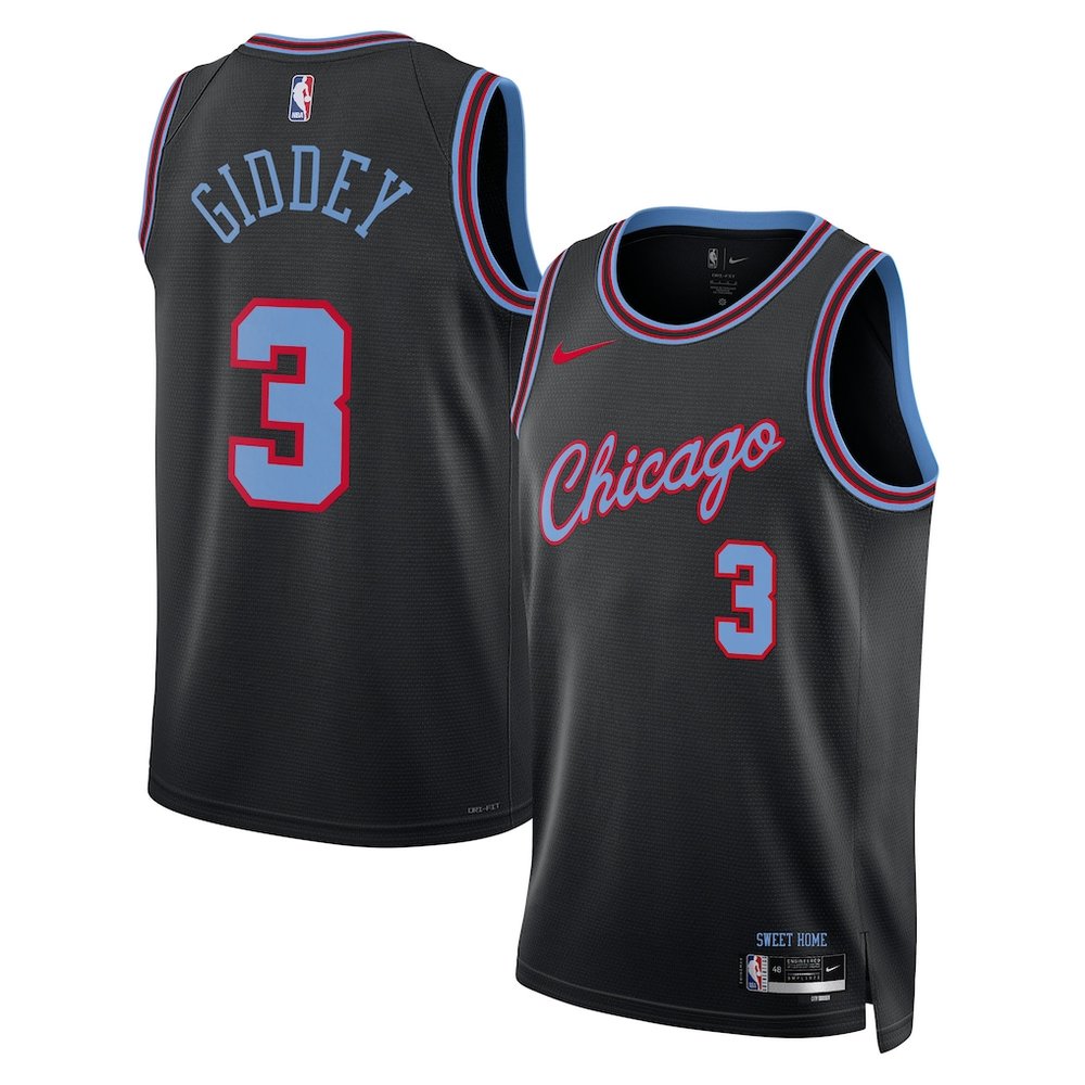 Men's Chicago Bulls #3 Josh Giddey Black 2025/26 City Edition Swingman Jersey