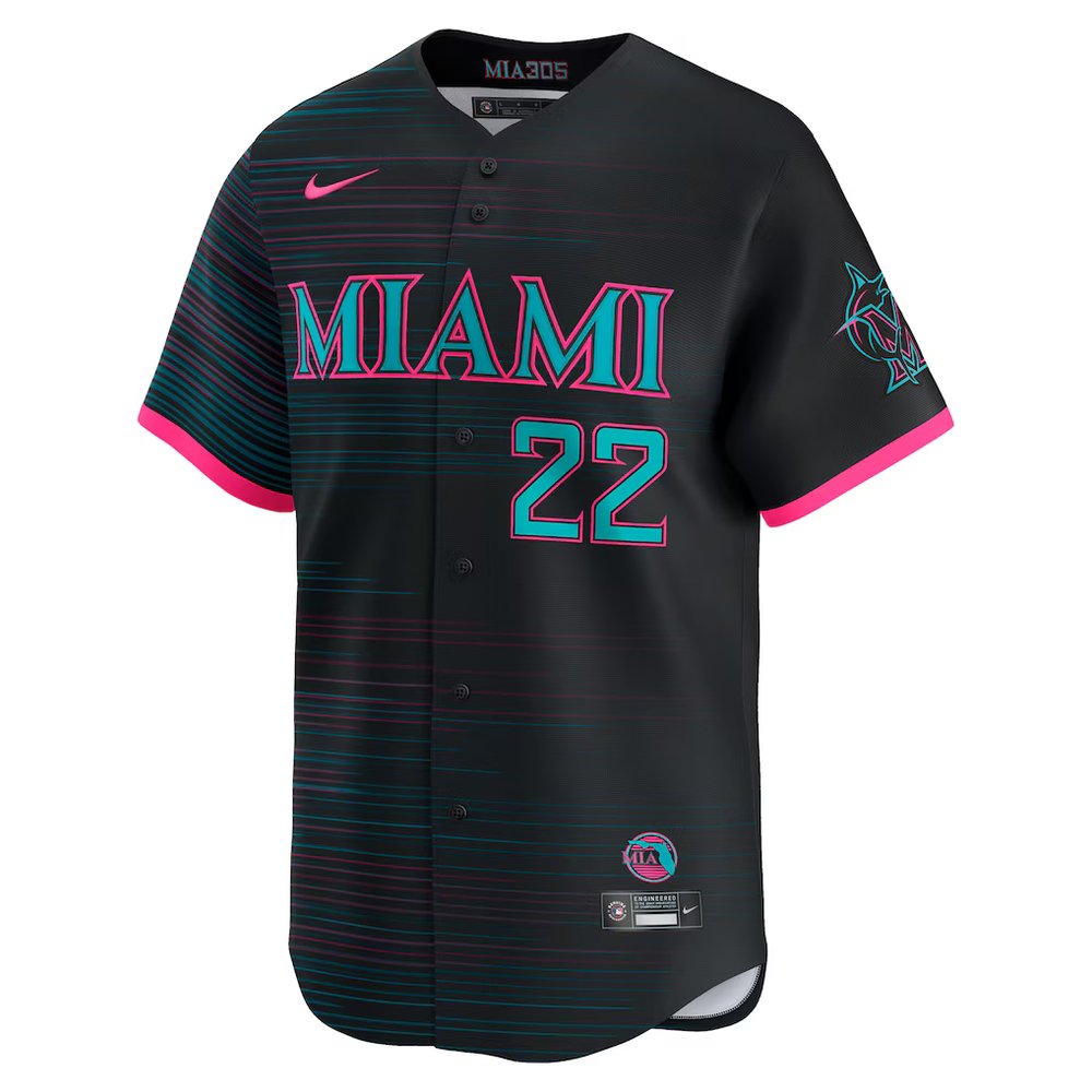 Men's Miami Marlins #22 Sandy Alcantara Nike Black 2025 City Connect Limited Jersey