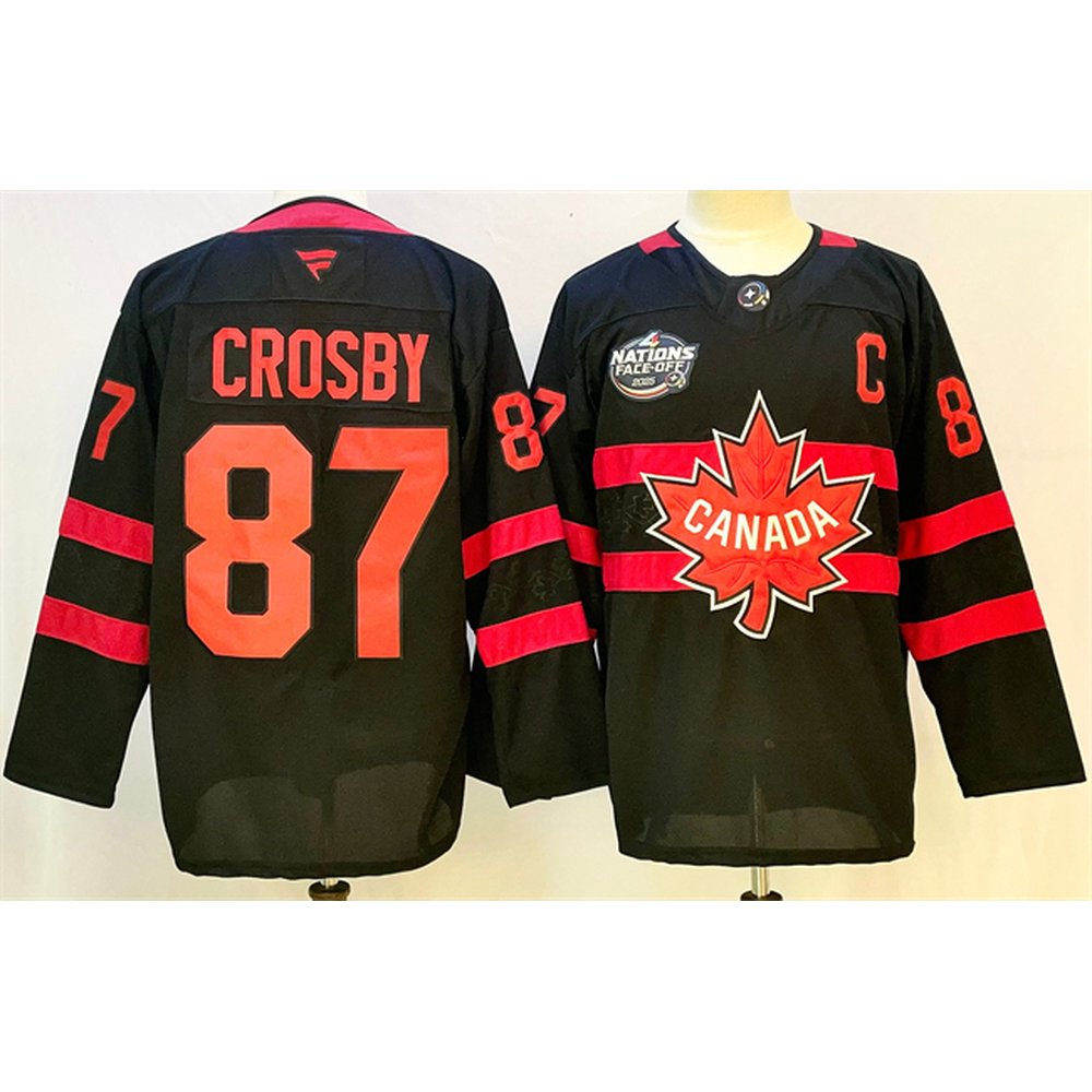 Men's Canada #87 Sidney Crosby Black 2025 4 Nations Face-Off Premium With C Patch Stitched Jersey