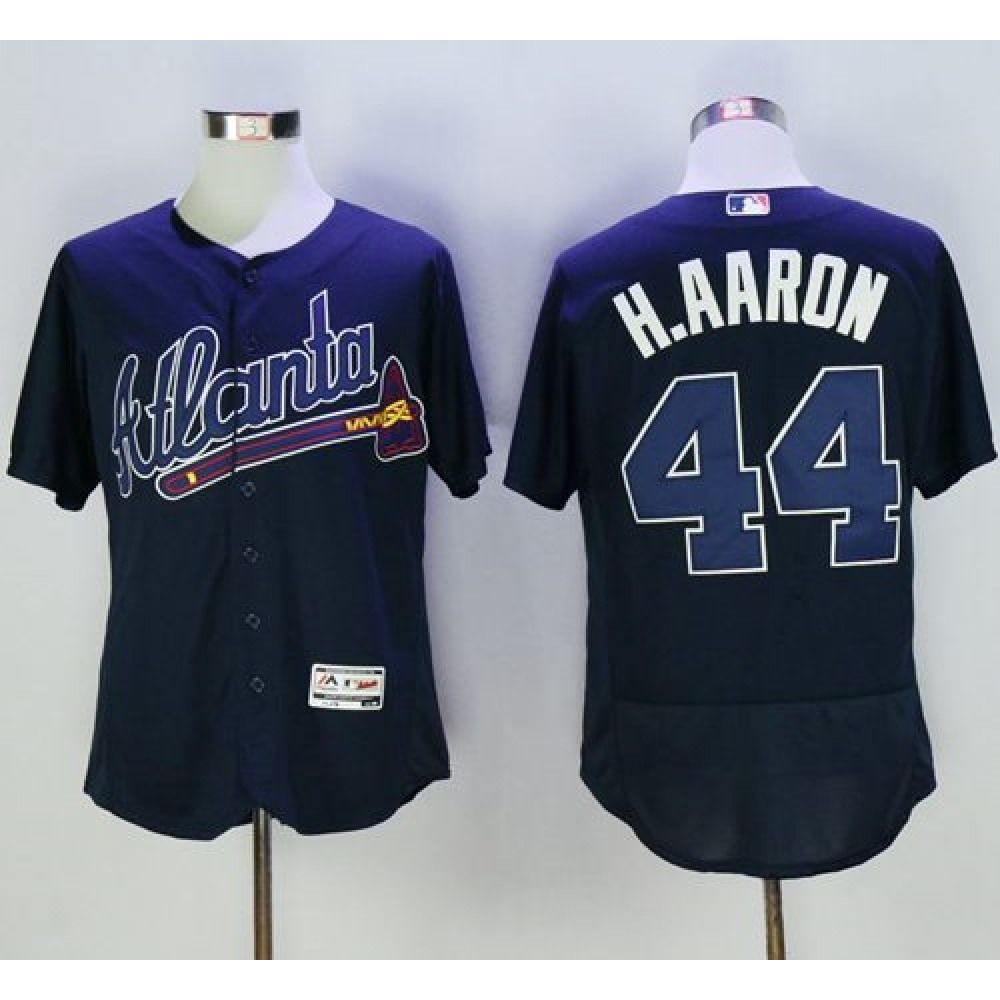 Braves #44 Hank Aaron Navy Blue Flexbase Authentic Collection Stitched MLB Jersey
