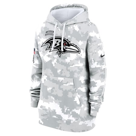 Women's Baltimore Ravens Arctic Camo 2024 Salute To Service Club Fleece Pullover Hoodie