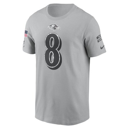 Men's Baltimore Ravens Lamar Jackson Gray 2024 Salute To Service Name & Number T-Shirt