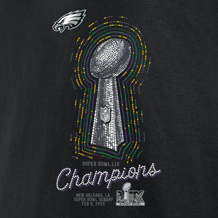 Men's Philadelphia Eagles Black Super Bowl LIX Champions Lombardi Trophy T-Shirt