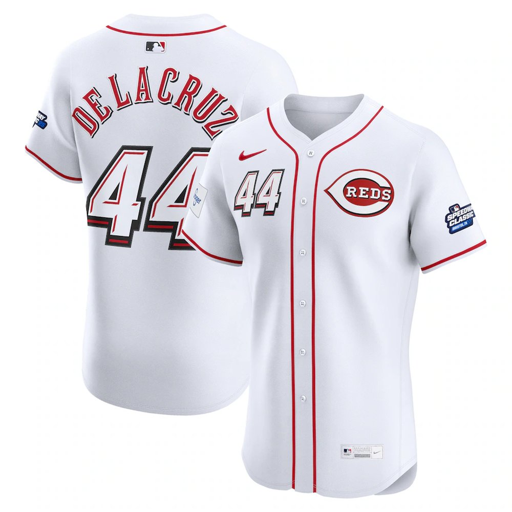 Men's Cincinnati Reds #44 Elly De La Cruz White 2025 MLB Speedway Classic Home Elite Player Jersey